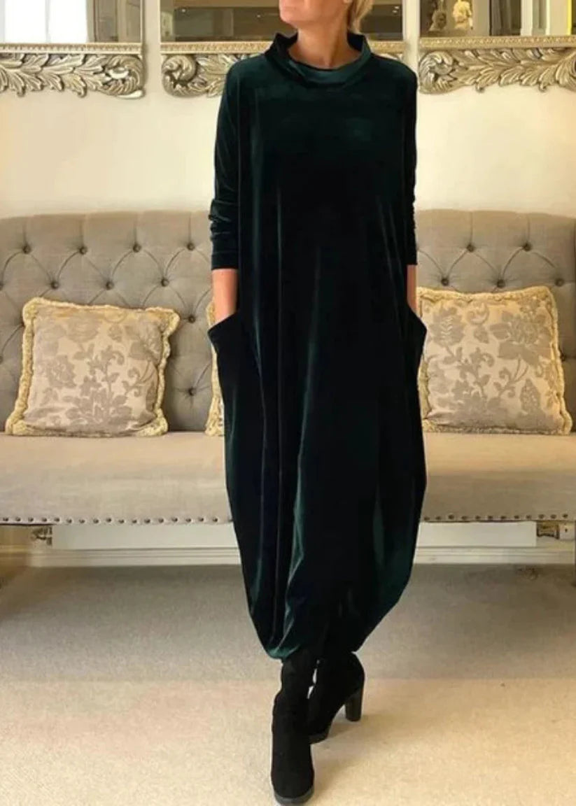 Miękka, ciepła i pełna klasy – Aria to idealna sukienka, by wyróżnić się w chłodniejsze miesiące. Dzięki luźnemu krojowi, golfowi i bocznym kieszeniom łączy wygodę z elegancją w każdym detalu. Doskonała na kolacje, wydarzenia lub zimowe dni, kiedy chcesz wyglądać stylowo, nie rezygnując z komfortu.